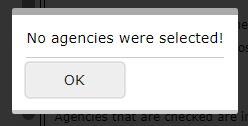 At least one agency must be selected before attempting to save or use a neighborhood. If no agencies are selected, the following error message will be displayed: