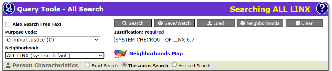 The default neighborhood for all queries is all local agencies of the current LInX system, plus whichever remote system(s) that may be included as default systems by the Regional Administrator.