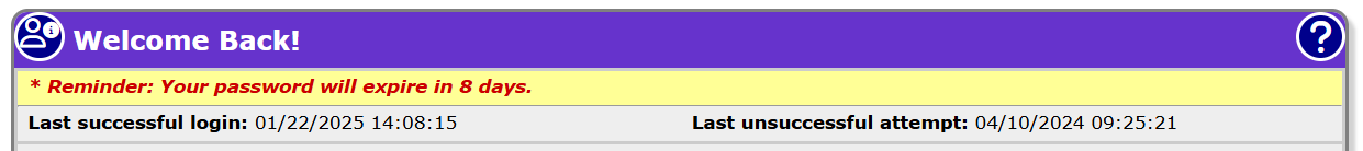 LInX user passwords are set to expire every 60 days. When there are 14 days left until the password is due to expire, a Password Expiration notice will appear on the top of the home screen after login. The password expiration message will be repeated at each subsequent login until the 14th day, when the user will be forced to change their password. If the option to change the password is chosen, the user will be taken directly to the Change Password screen.